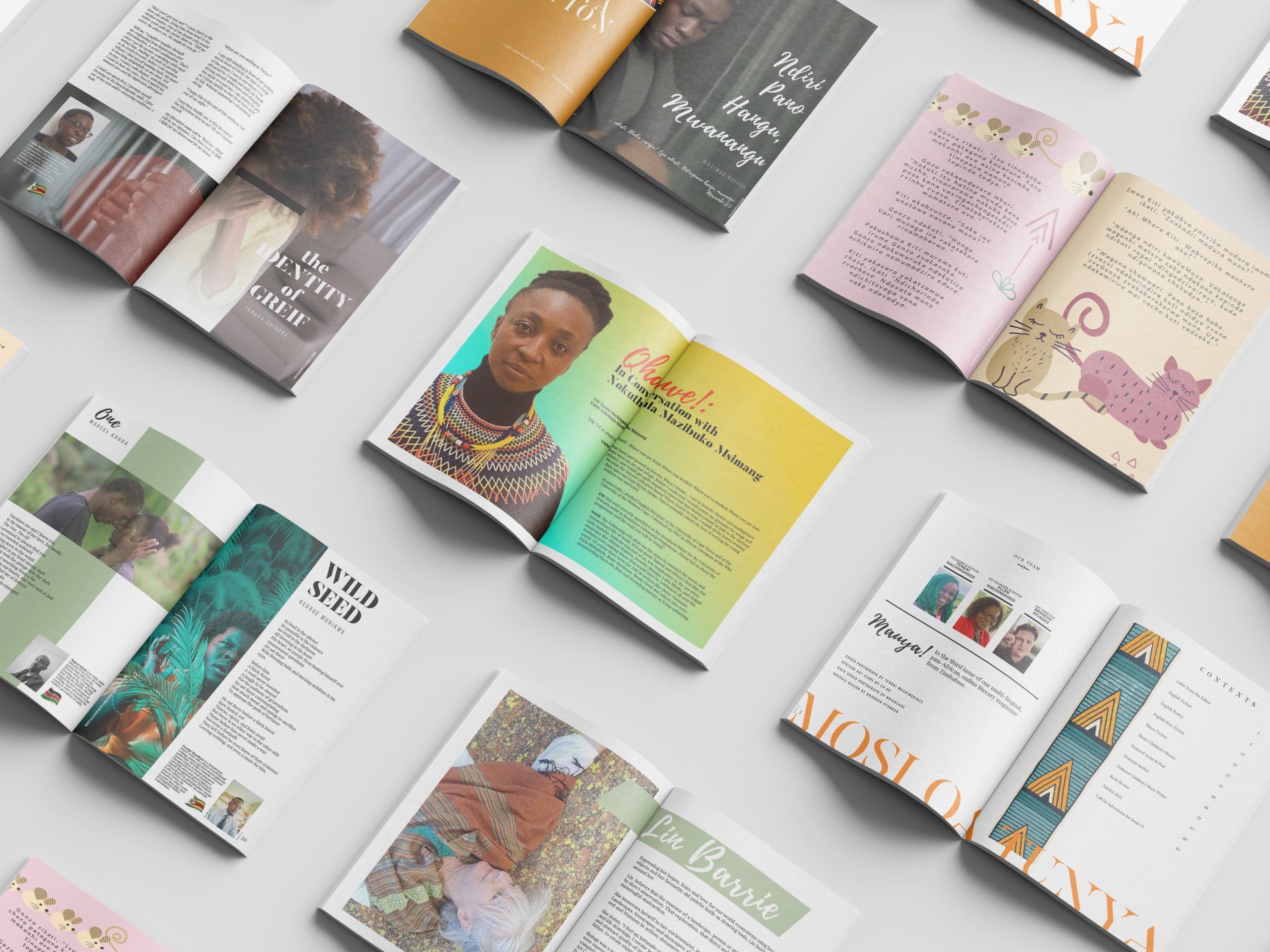 Pan-Africa Literary Review. This is currently an online magazine, but developed as both print-ready as well as pdf viewable. I am the current art director of this great creative outlet. Editor and founders Tendai and Ellen Machingaidze curate content from African writers and illustrators and I have been doing the graphic design, art direction, and additional photography/art collection to complete the issues. This is a very rewarding endeavor, and I am so proud of it.