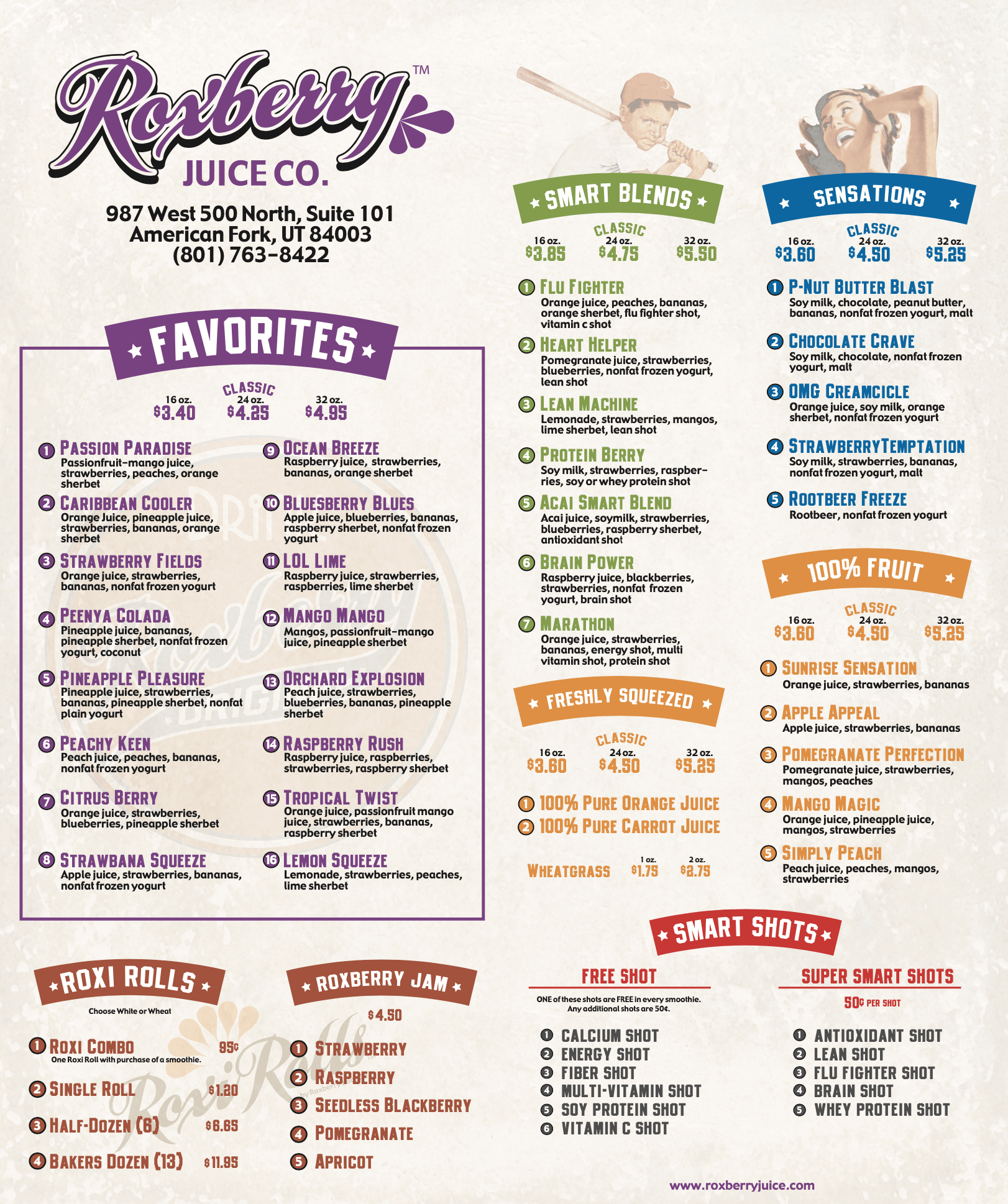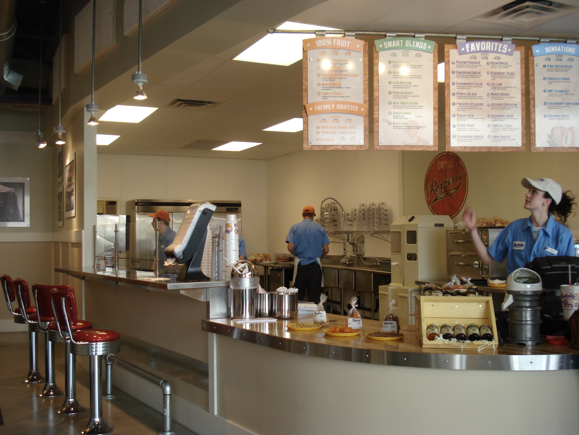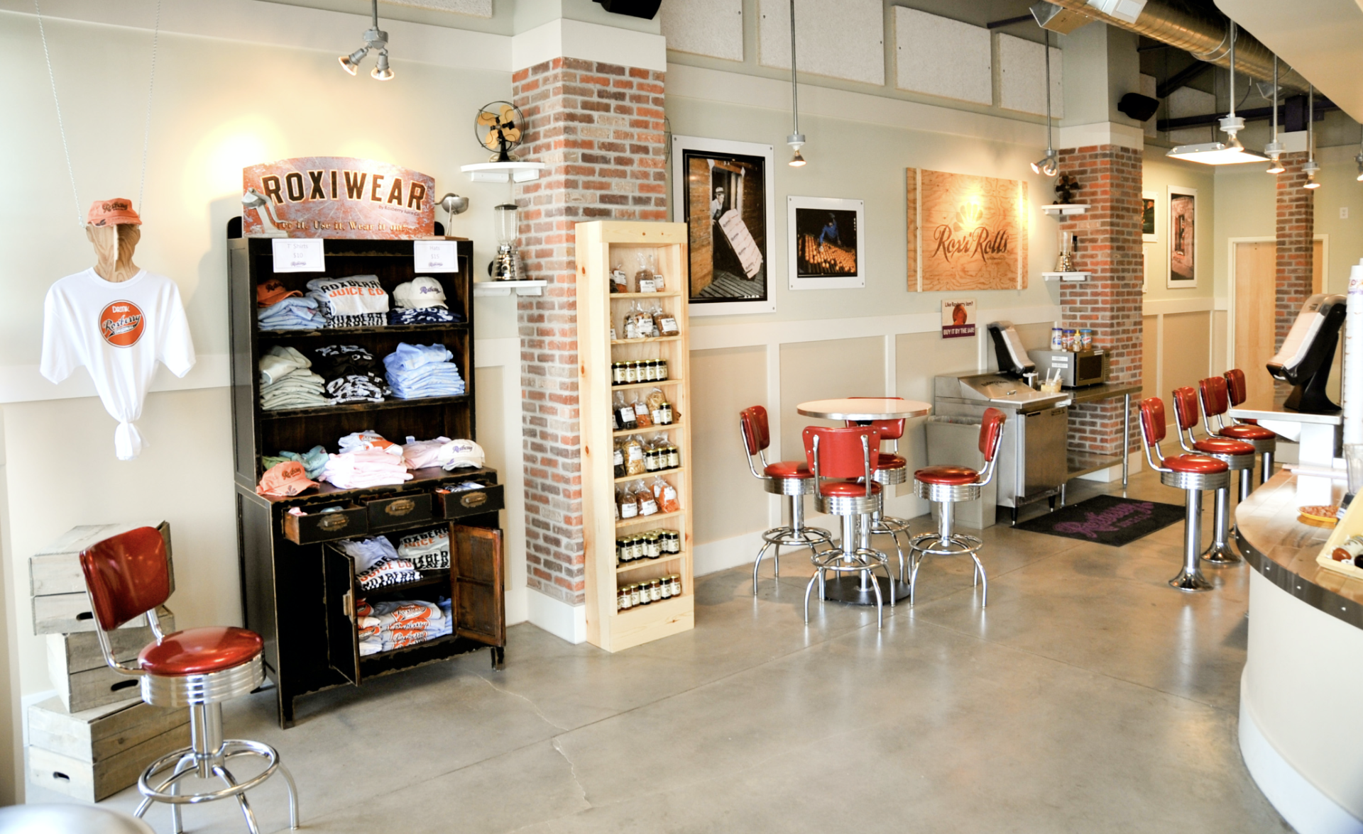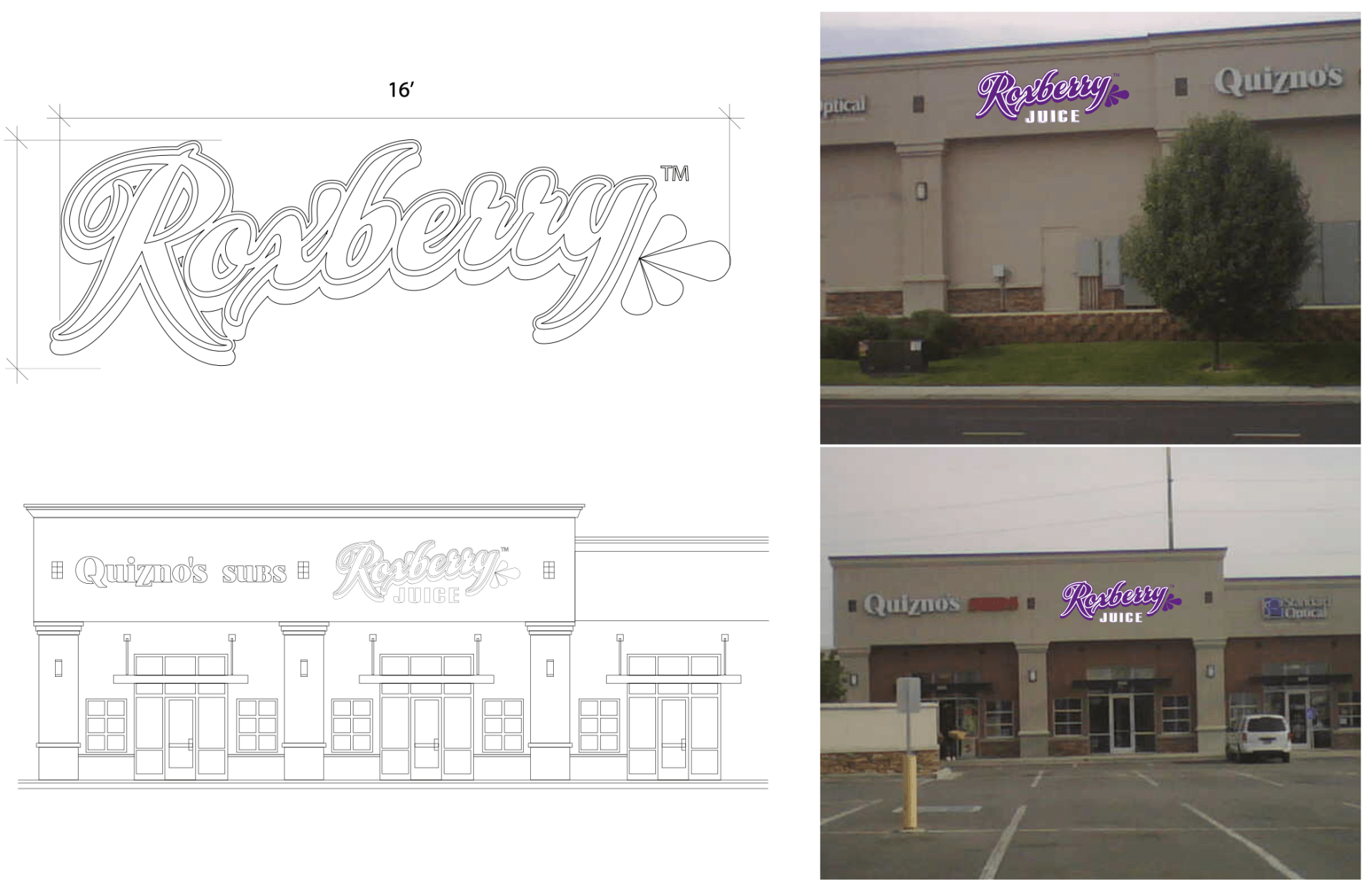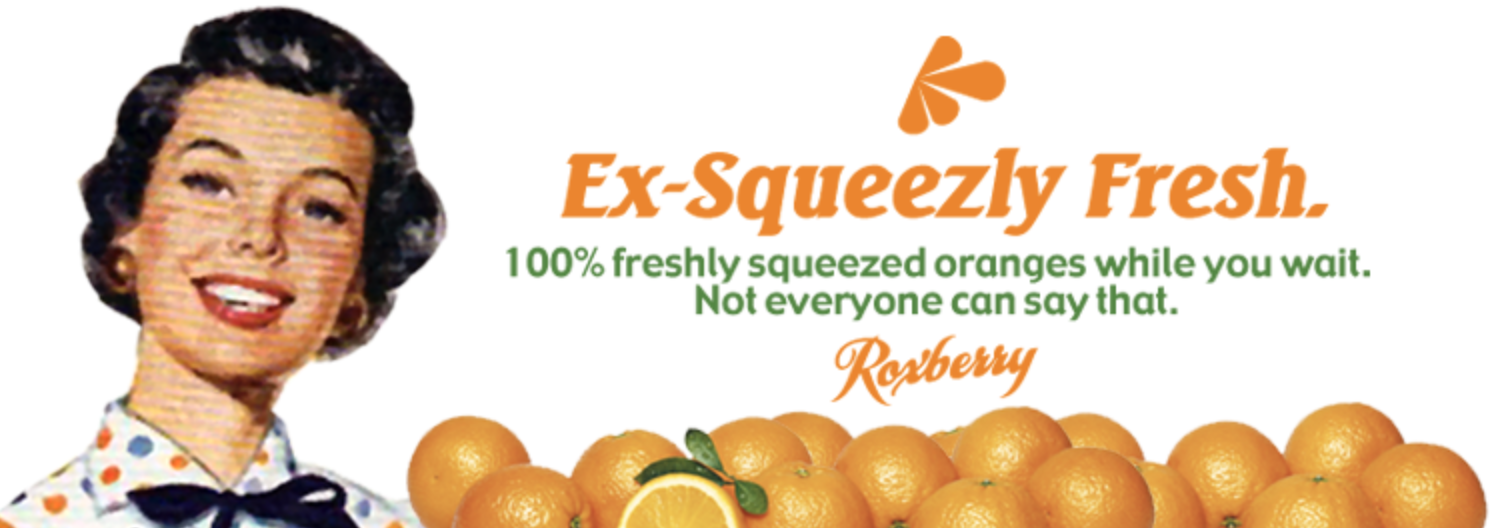 Roxberry Juice Co. brand creation and design development of collateral. The creative process here included everything from logo and menu design to environmental design.